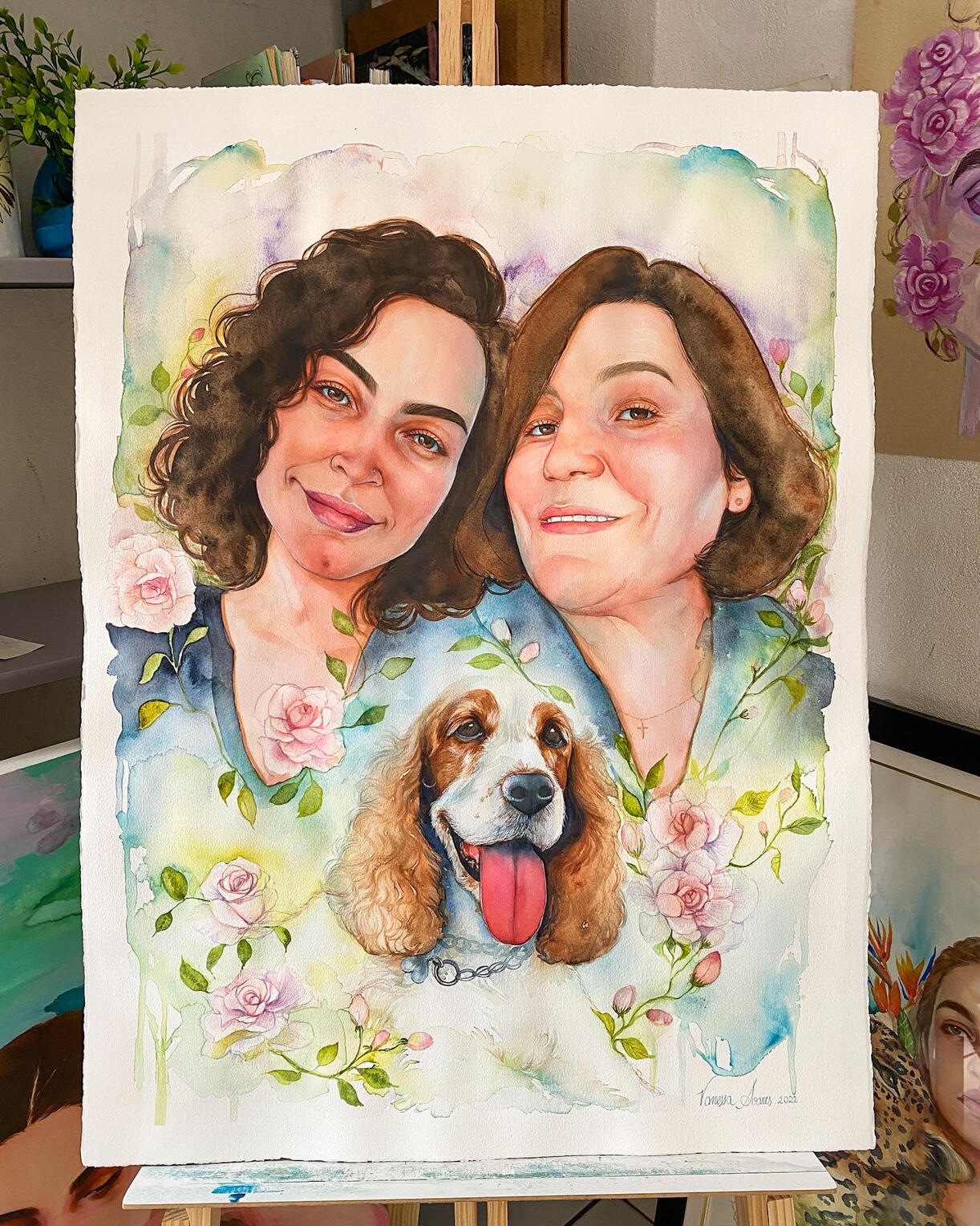 Escolha com quantos animais e em qual tamanho você quer o retrato. Caso não tenha apenas uma foto de referência, posso juntar várias fotos em uma só arte!